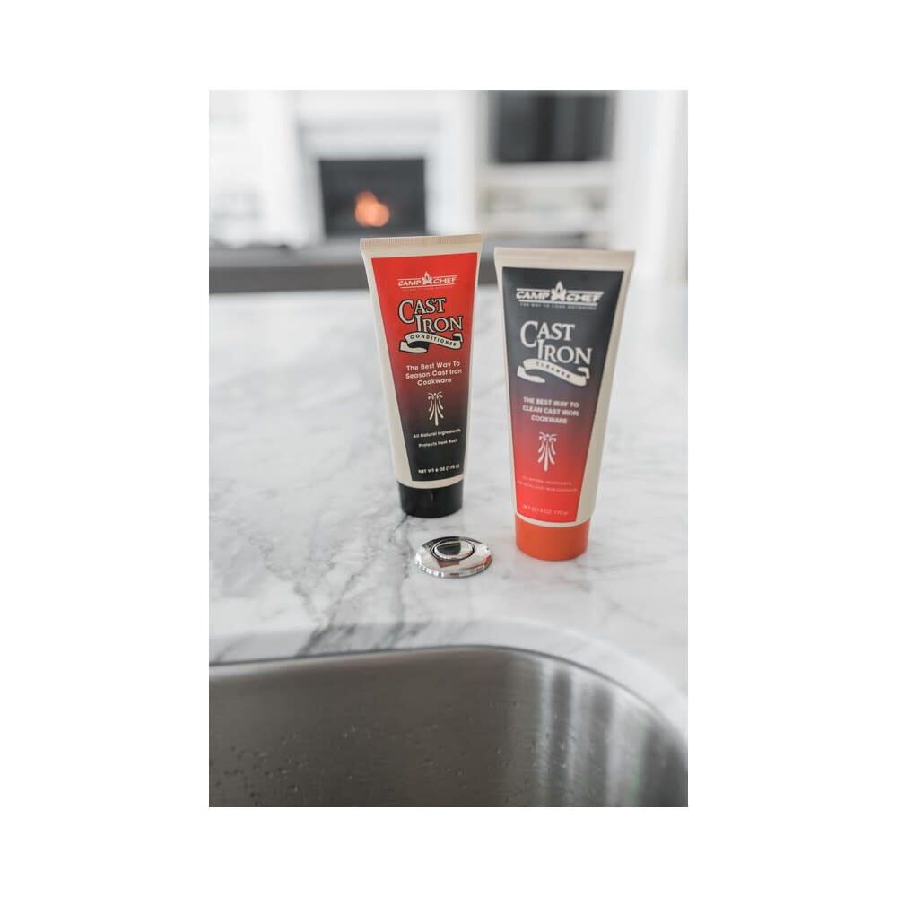 For best results, follow up with some Camp Chef cast iron conditioner to protect your iron with a fresh layer of seasoning.