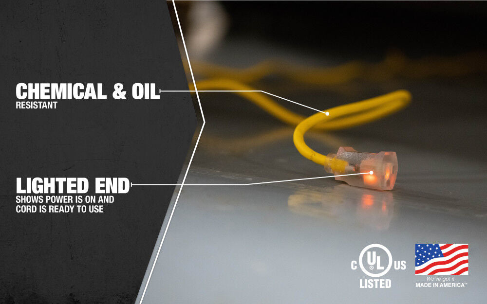 - CHEMICAL AND OIL RESISTANT: Jacket provides protection of the cord against moisture, freezing, abrasion, and sunlight