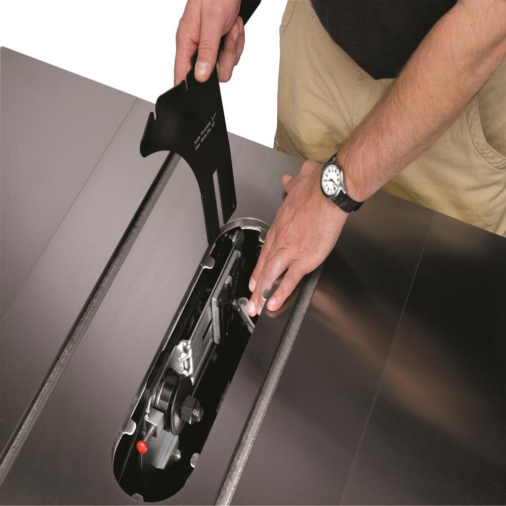 The quick release riving knife and integrated arbor lock keeps the operator safe and more efficient.