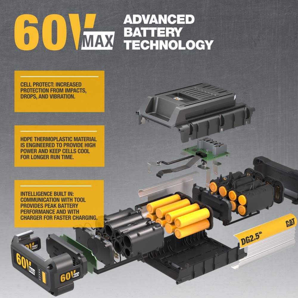 And it runs on the revolutionary CatÆ 60V battery platform, which features cutting-edge advancements in battery tech for more performance and run time.