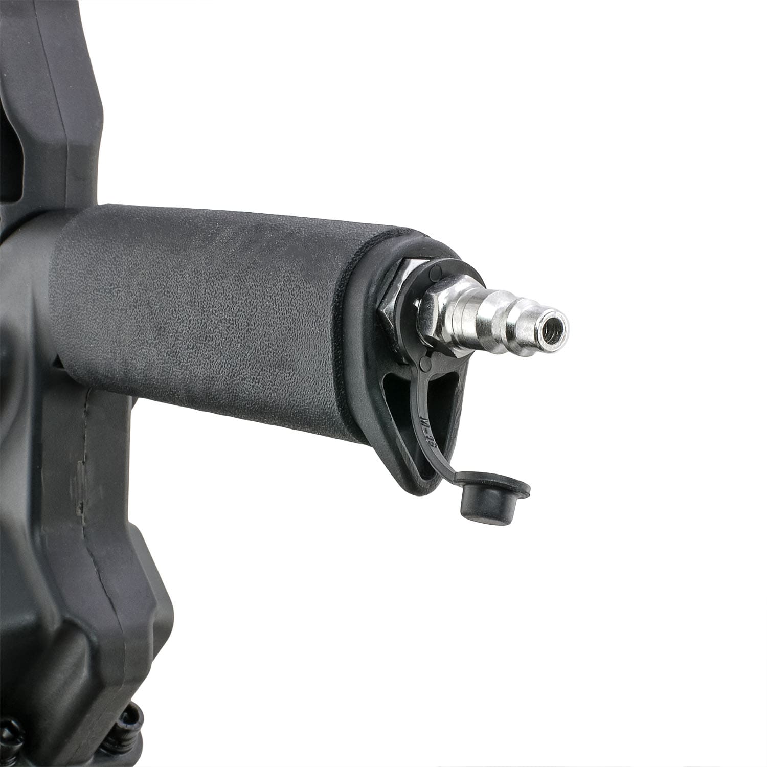 This air powered flooring nailer comes with 3 interchangeable base plates and is compatible with 18-Gauge L-cleats from 1-1/4 in.