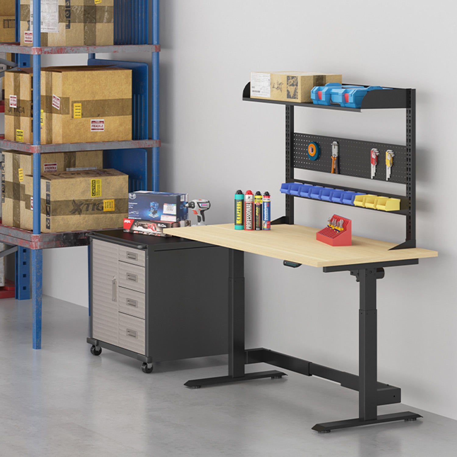 ● Sturdy, telescoping legs adjust from 29 to 42" high. 4 programmable heights. Push-button control.
