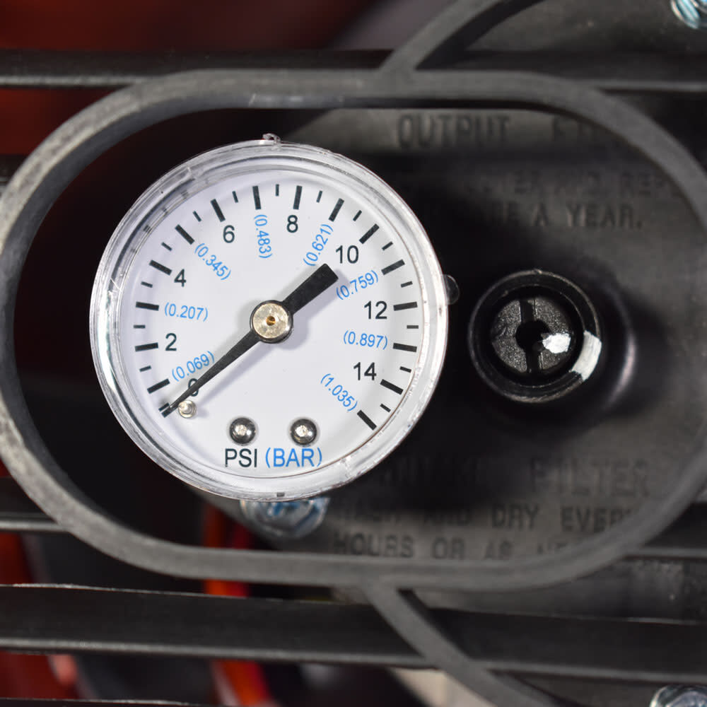 - Built-in calibrated air pressure gauge, and fuel gauge