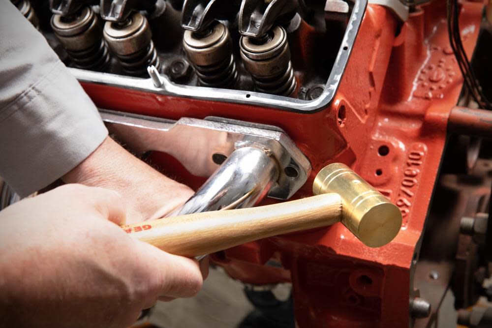 Soft brass head is non-sparking, surface protective to prevent work surface damage