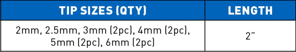 - Proprietary precision CNC machined tips for excellent fit in fastener recess