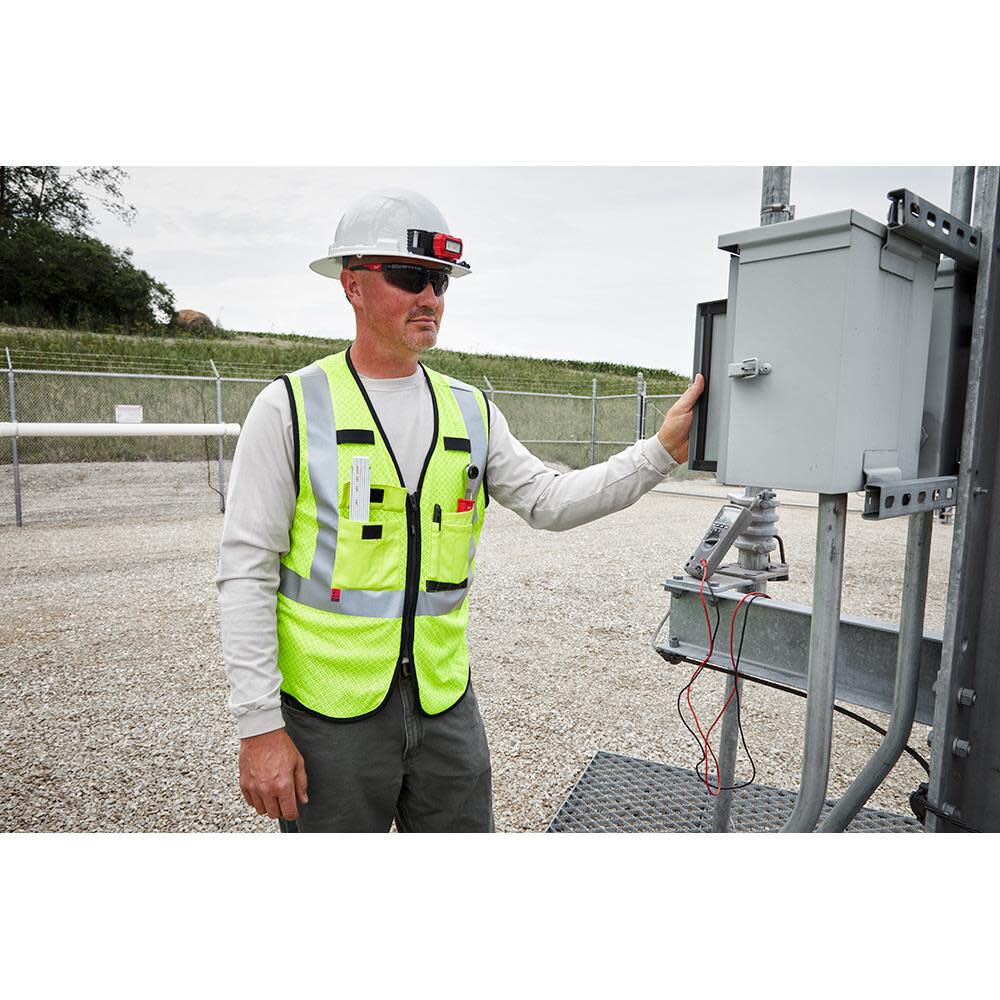 The MILWAUKEEÆ S/M AR/FR CAT. 1 Class 2 Mesh High Visibility Safety Vest is engineered to carry more with breathable protection.