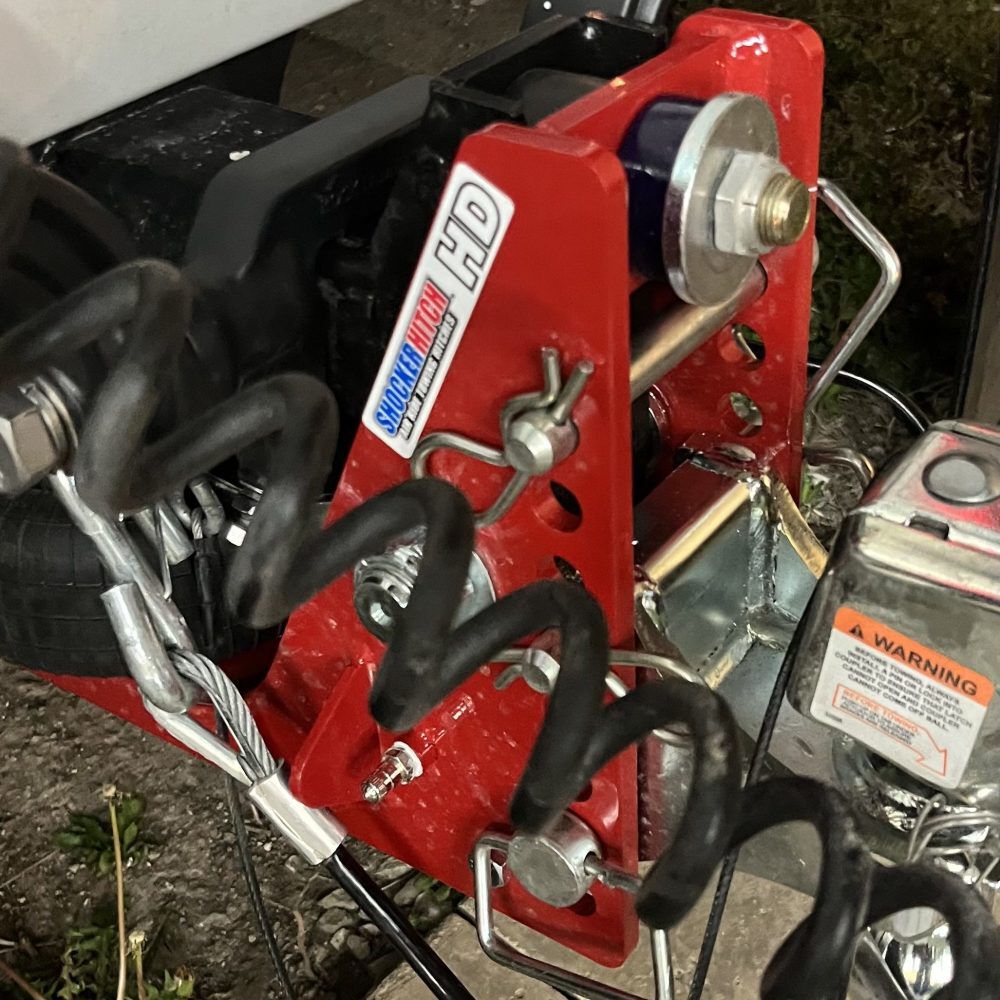 This shocker absorbing hitch is a miniature air suspension unit mounted between your pickup truck and trailer that channels the bumps, bangs and jerks felt when trailer towing and filters them through the built in air ride system.