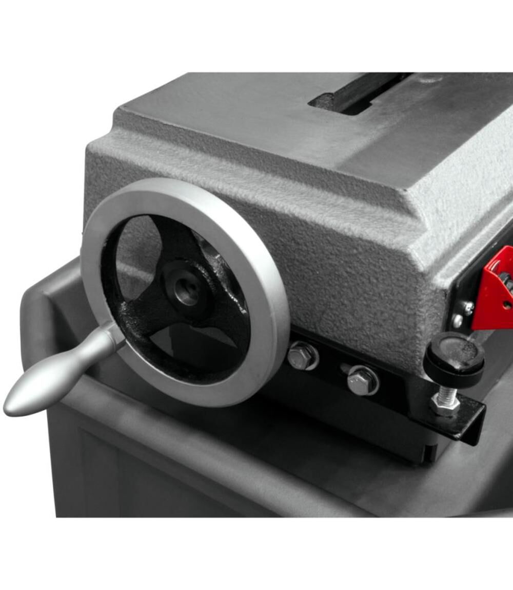 - Micro adjustable tool-less material stop for accurate set-up and repeatability