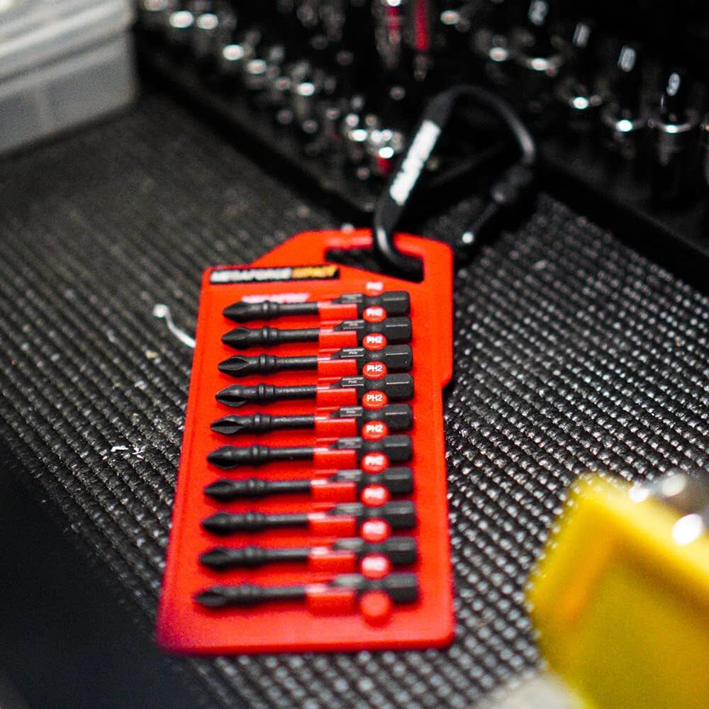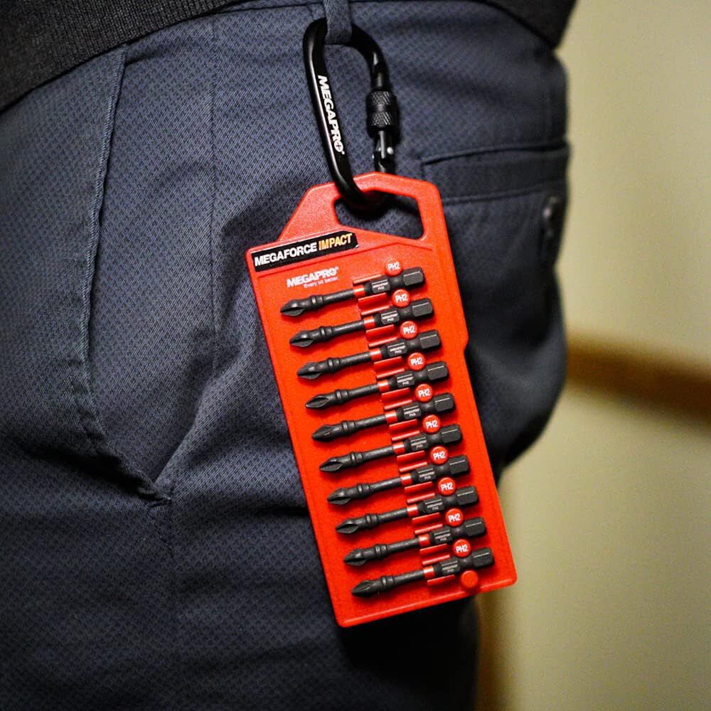 Each bit size is color-coded for easy-to-find selection and the pack comes with a carabiner clip that can be quickly attached to your toolbox or belt.