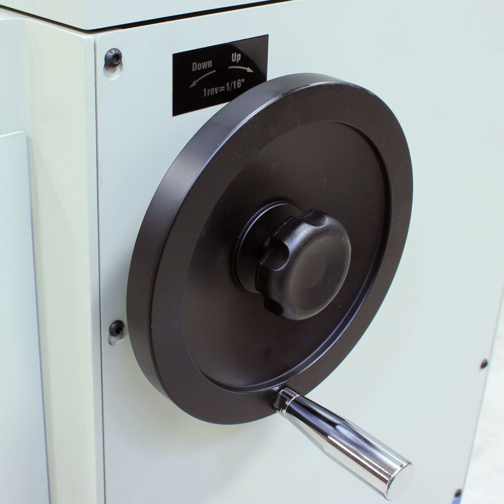 - Handwheel lets you adjust the table elevation, digital readout shows the changes for easy repeatability, segmented chip breaker stops debris from clogging the industrial wood planer (or your dust collector)