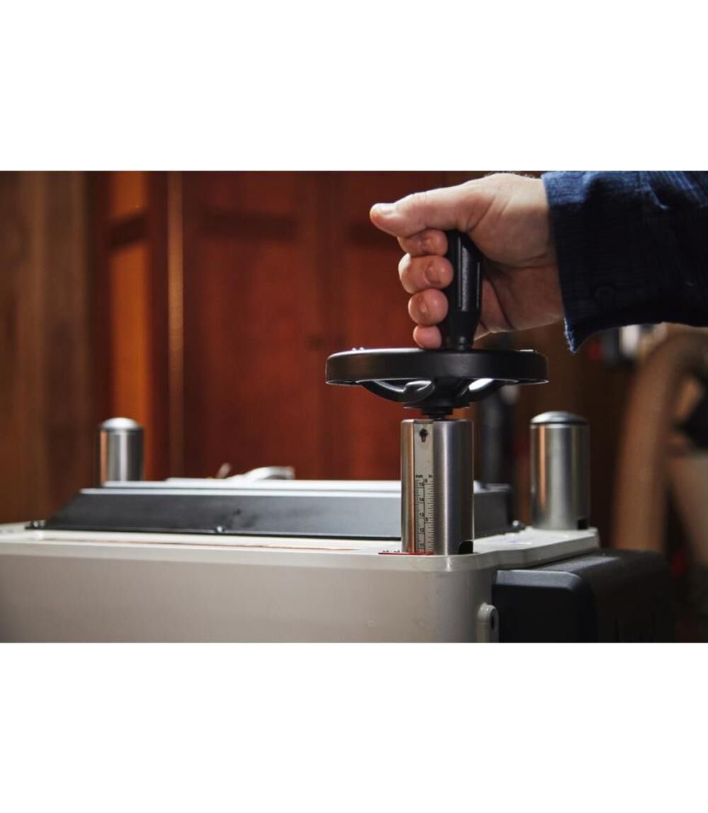 - Large hand wheel with positive gear drive easily moves the head to the desired board thickness