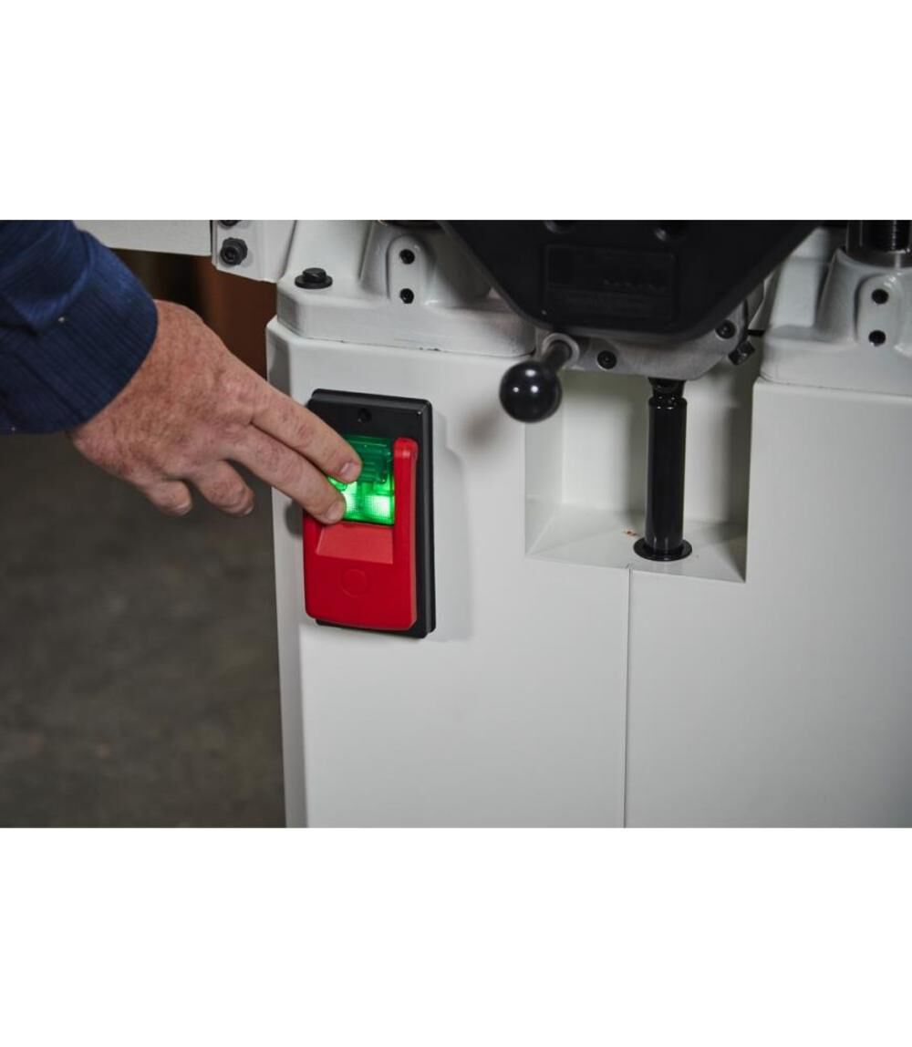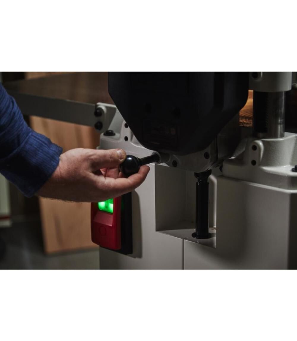 A large precision cast-iron table and Infeed/outfeed tables make this planer a beautiful addition to the shop.