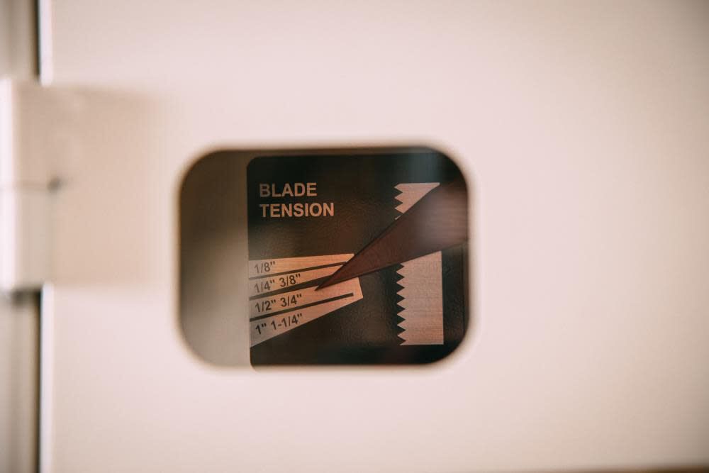 Large resaw capacity for cutting large pieces of wood, slicing veneers, and cutting book matched panels