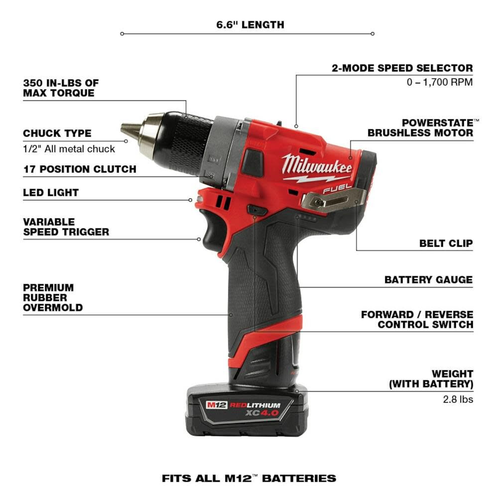 Also included, the M12 FUEL 1/2" Drill/Driver is the most capable, lightest weight, most compact tool in its class.