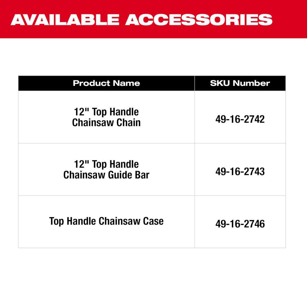 The MilwaukeeÆ M18 FUEL 12" Top Handle Chainsaw cuts faster than 35cc gas, delivers the power to cut hardwoods, and eliminates the headaches associated with gas engines.