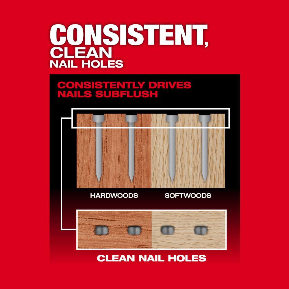 The cordless brad nailer operates using Milwaukee's REDLITHIUM batteries (not included) and sealed compressed nitrogen to drive each nail, eliminating the cost of gas cartridges and associated maintenance.