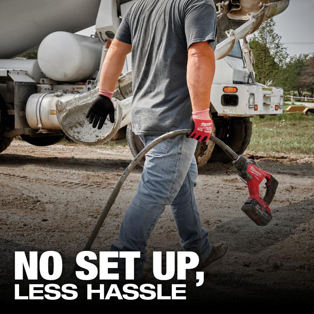 The MILWAUKEEÆ M18 FUEL 4 ft Concrete Pencil Vibrator Kit generates up to 1.8 peak HP, with no setup and the ability to consolidate 20 yds≥ of concrete per charge.