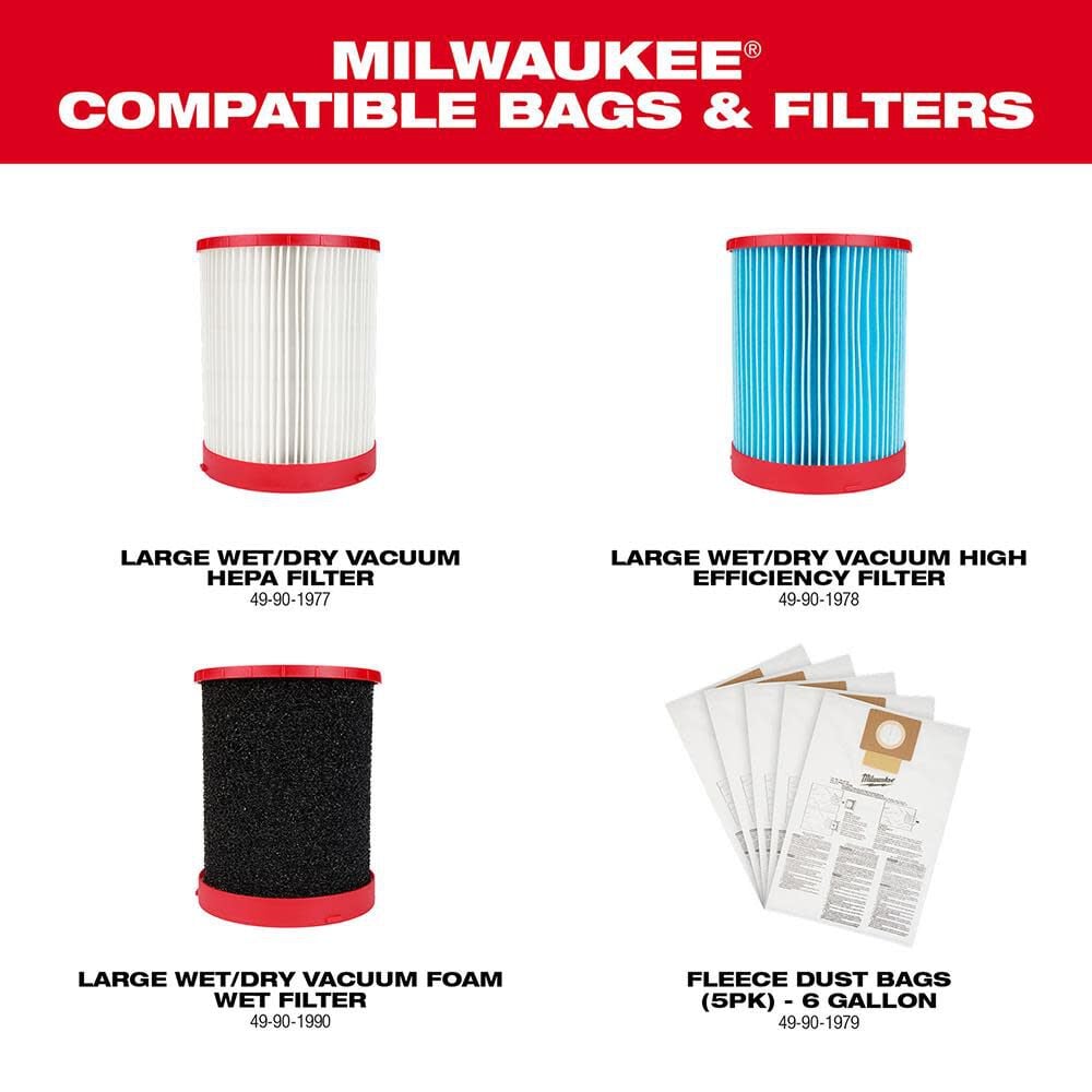Milwaukee M18 FUEL 6 Gallon Wet/Dry Vacuum (Bare Tool) with 4-in-1 Cleaning Tool & Storage Bag Bundle