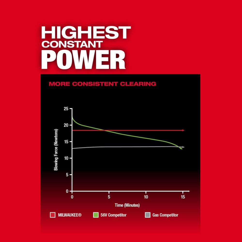It constantly blows powerful air throughout the full charge of the battery compared to all handheld gas blowers.