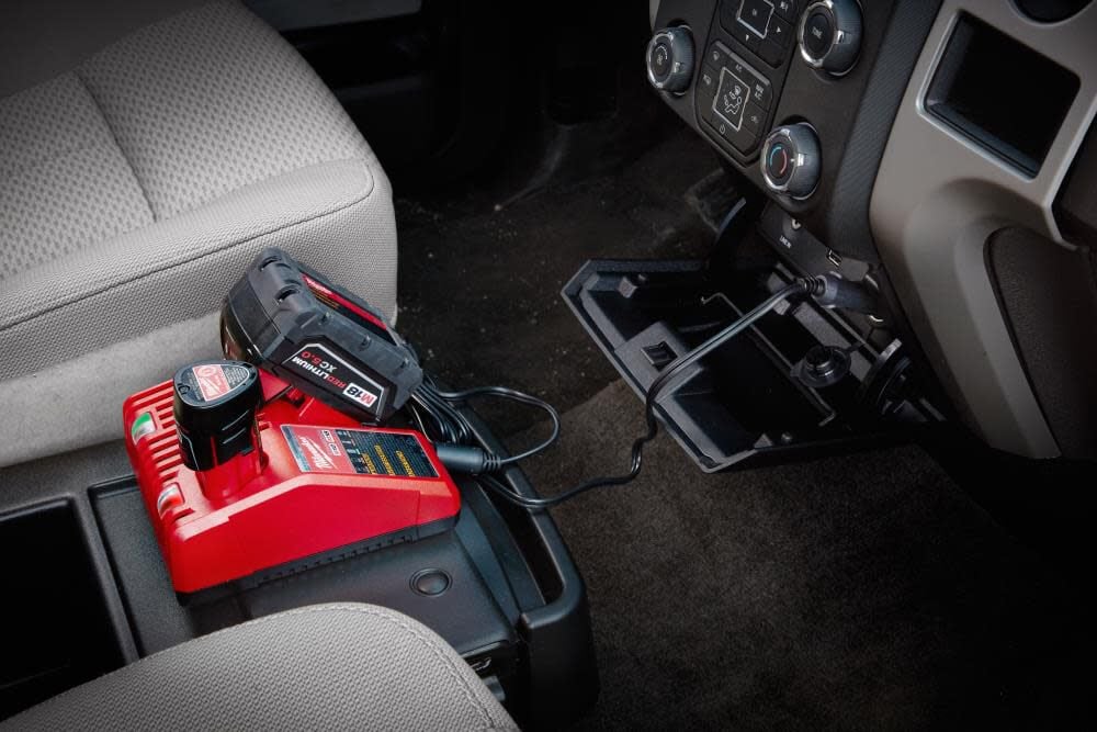 The M18 & M12 vehicle charger allows users to charge battery packs on the go from the DC outlet of any vehicle.