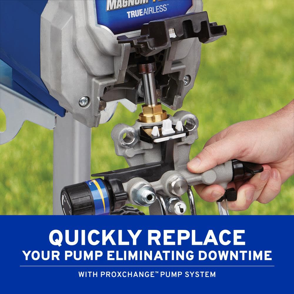 You can quickly swap out the ProXChange Pump with no tools, and eliminate downtime on-the-job so you can keep spraying.