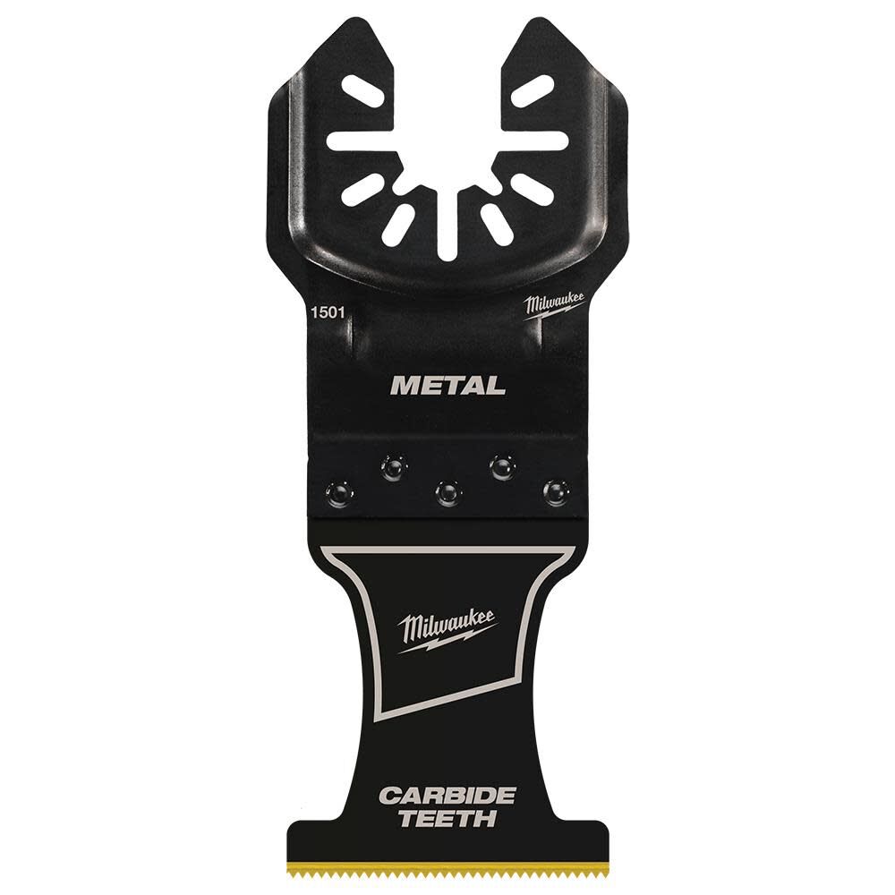 The MILWAUKEEÆ OPEN-LOK 1-3/8" Carbide Teeth Metal Oscillating Multi-Tool Blades are designed for metal cutting in screws, bolts, nails, and more.