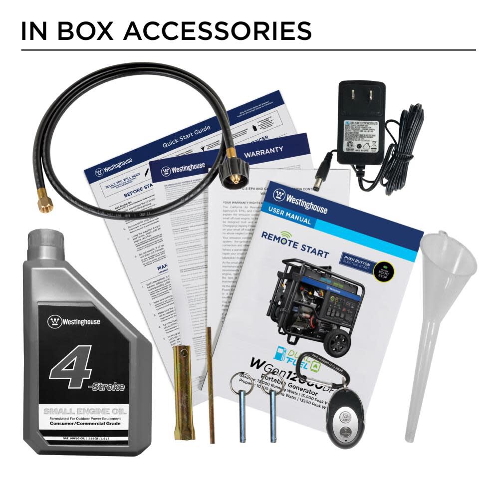 - All Westinghouse portable generators are functionally tested in the factory and may contain minimum residual oil and/or fuel odor