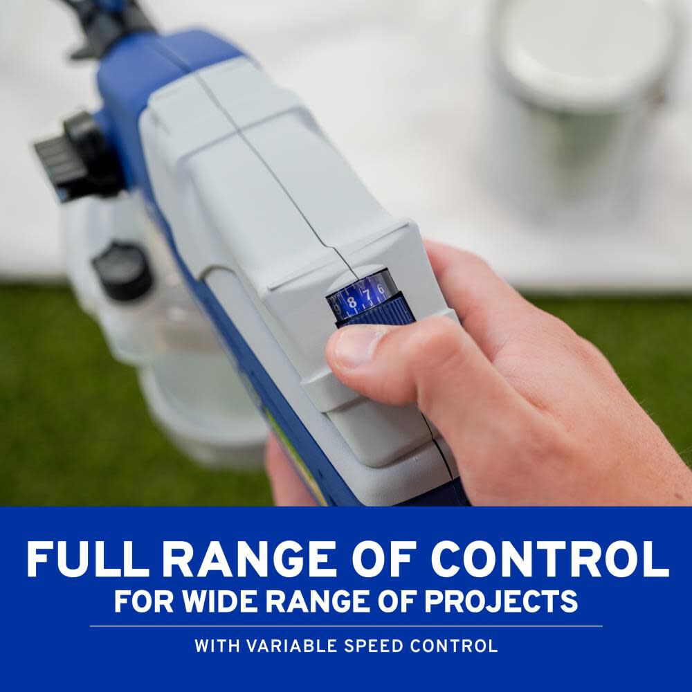 Start on 1 or 2 for smaller detailed projects like cabinet doors or staining spindles or bump up the speed to 8 or 9 to tackle walls or fences in a breeze.