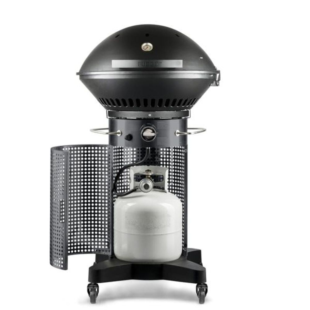 - Featuring perfect clasp door close system, hinged propane tank storage door, non-marking industrial casters and electronic ignition.