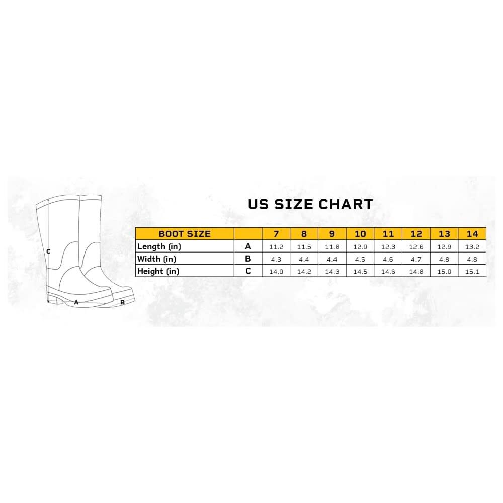 The R230 Black PVC Rain Boots have a durable cleated sole for improved traction and are sized to be worn with your thick socks.