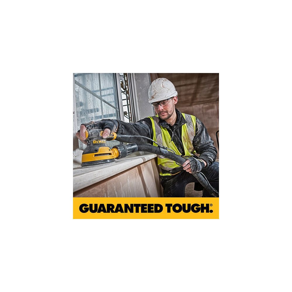 A shorter design allows users to get closer to the work surface and the one-handed locking dust bag attaches securely to the sander to aid in dust collection or the user can attach the sander directly to the DWV010 or DWV012 dust collectors.