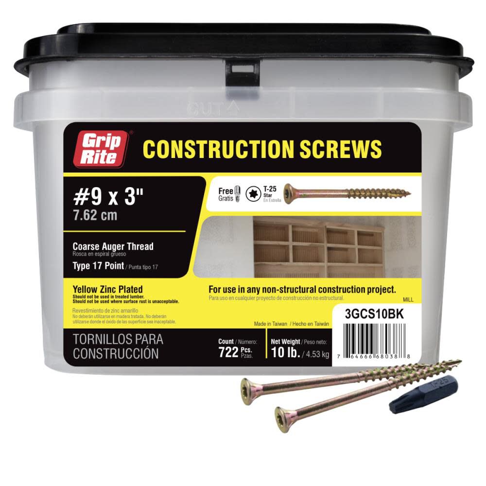 - Grip-Rite 10-Lb #9 x 3-in Bugle-Head Yellow Zinc Type 17 Star-Drive Interior Wood Screw