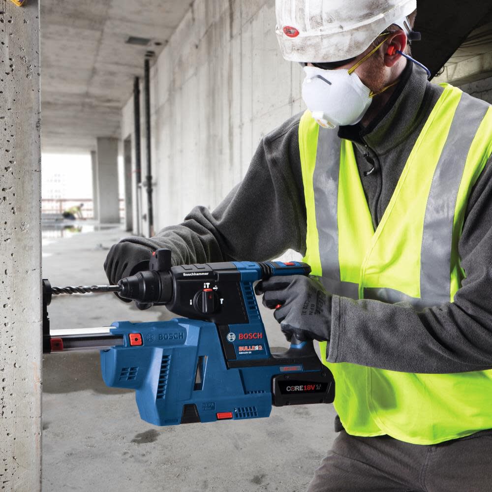 Attaches to GBH18V-26 rotary hammer – provides a self-contained dust solution for max mobility
