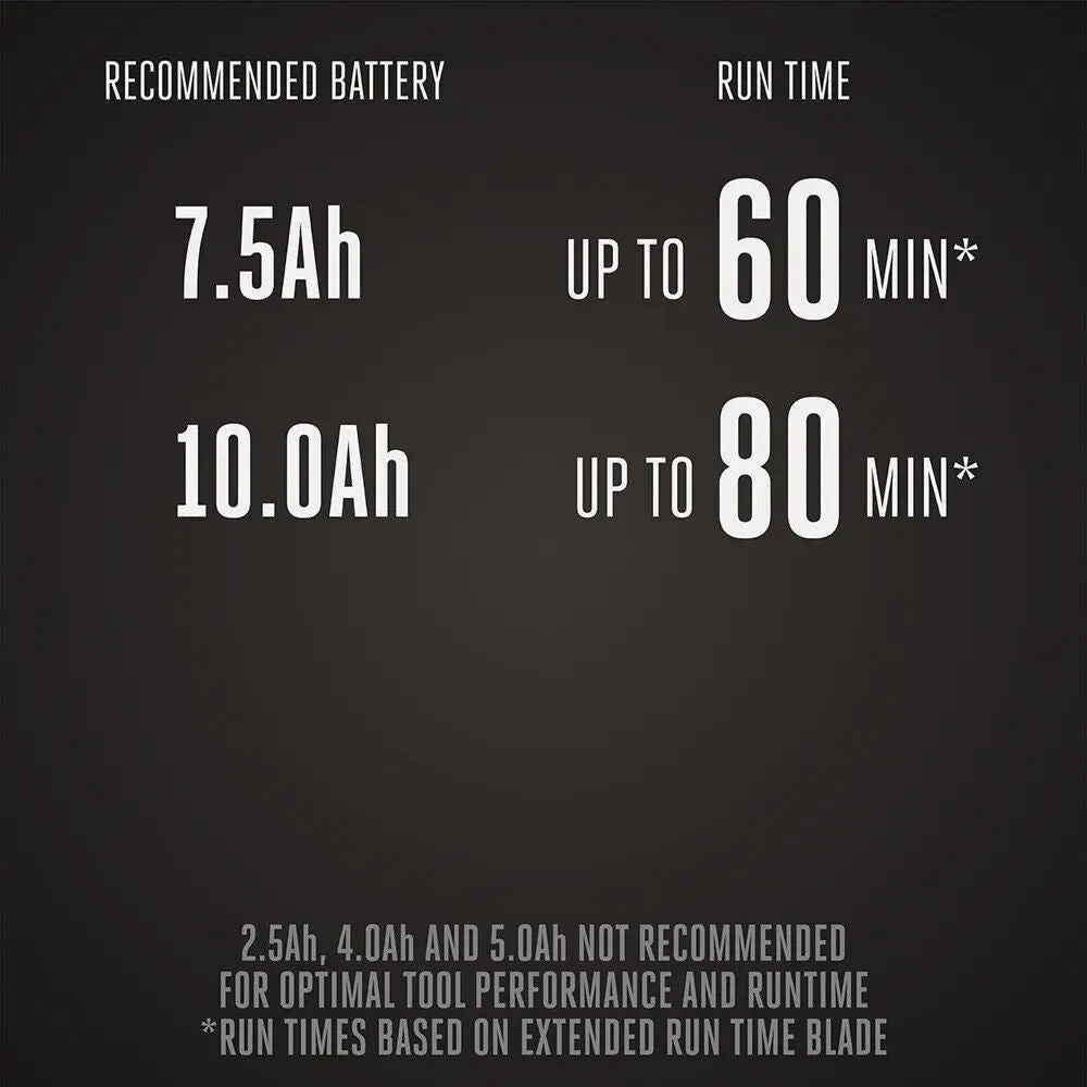Up to 60 minutes of runtime on a single charge with the included 56V 7.5Ah ARC Lithium™ battery
