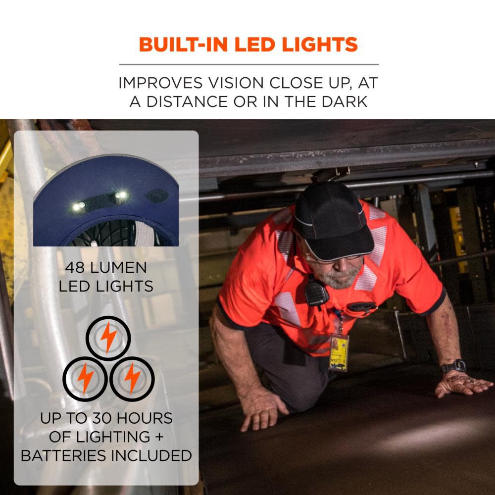 Ergodyne Skullerz 8960 Bump Cap Hat Short Brim Navy with LED Lighting Technology