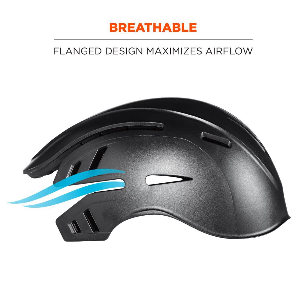 Available in two different brim lengths for unobtrusive wear in cramped work environments.