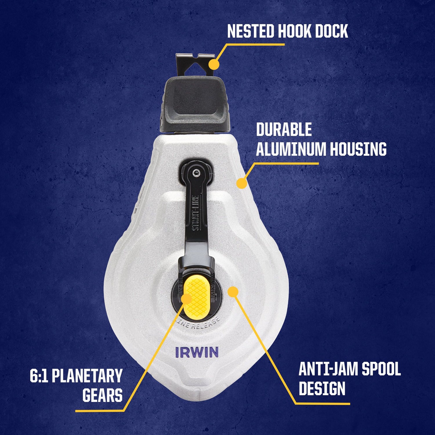 6:1 PLANETARY GEAR RATIO: Rewinds 6X faster than traditional chalk line reels*