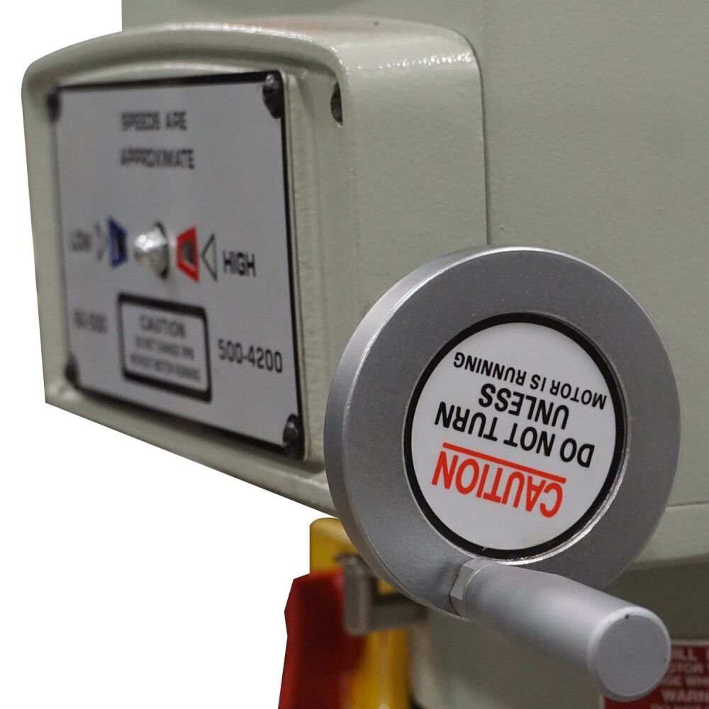 - Variable spindle speed by adjustable sheaves/pulleys - Control spindle RPM with the turn of a handle