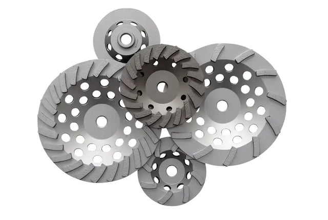 Our cup wheels provide fast stock removal with minimum dust. Choose single row for roughing and double row for finishing of concrete and masonry. We also have swirly cup wheels for concrete floors. Turbo cup wheels are available in fine, medium and coarse grits. We stock many others for any specific application.