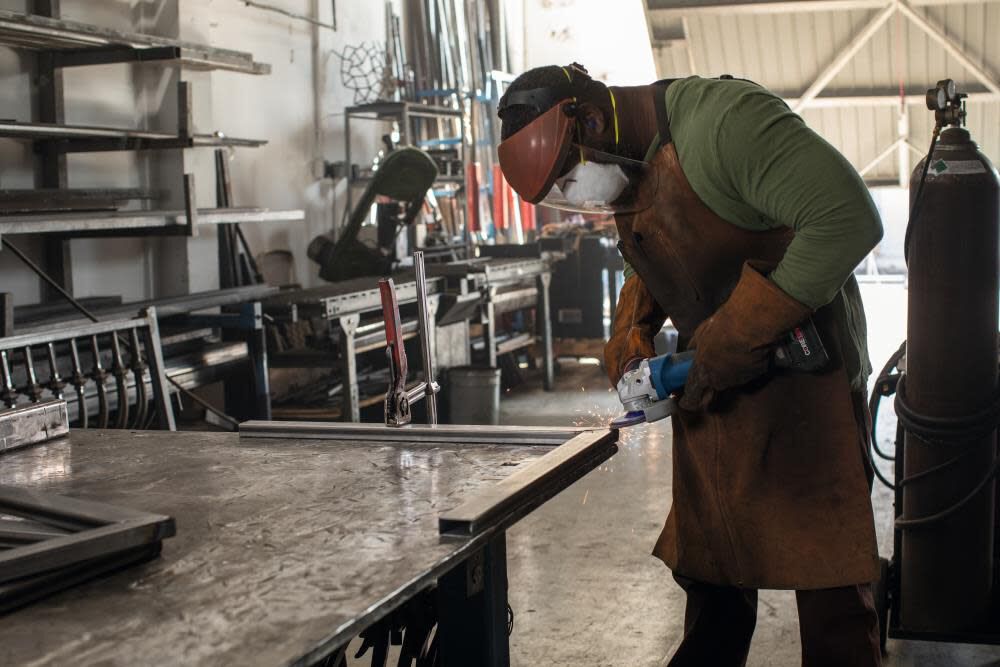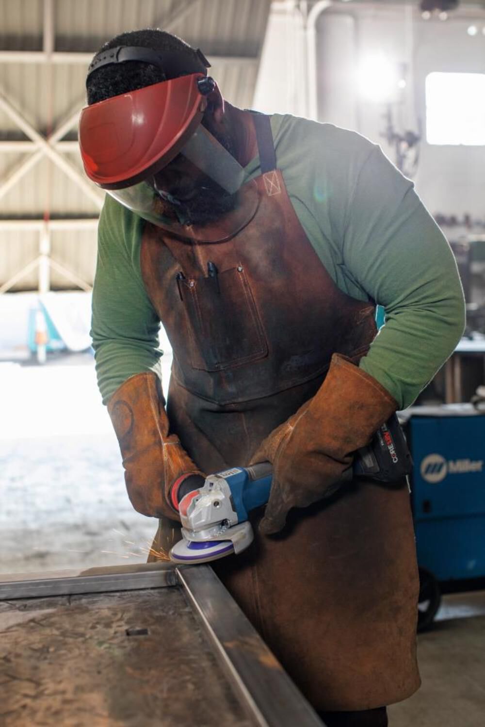 This flap disc features a plastic backing to reduce the risk of material gouging.