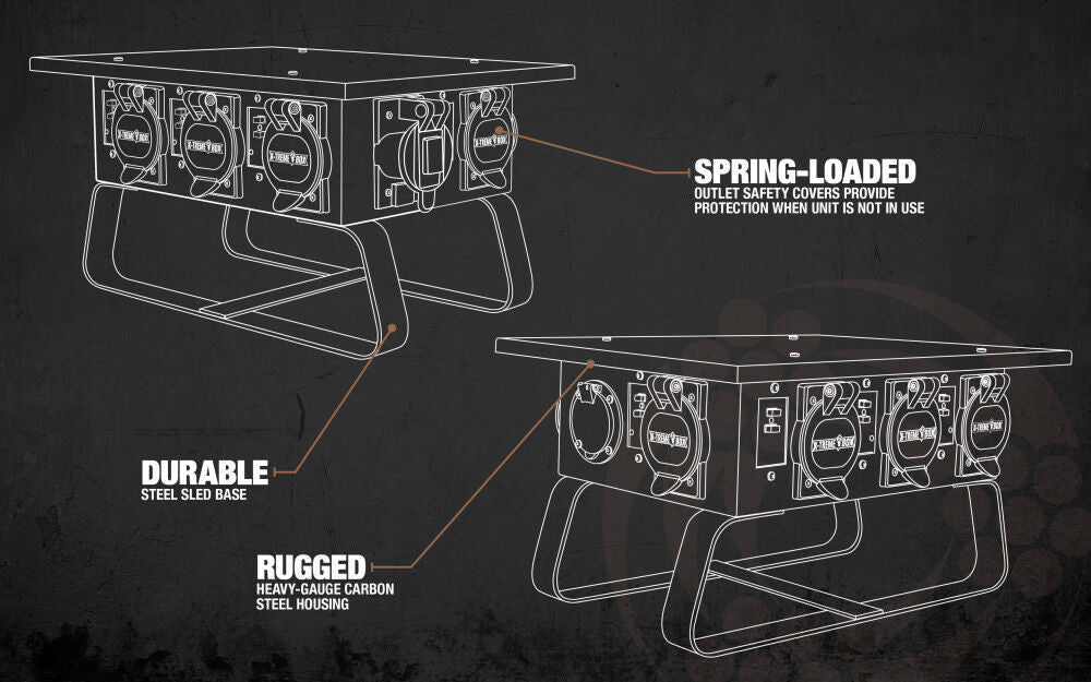 Southwire X-TREME BOX power boxes, sometimes called spider boxes or spider box, are a portable power distribution center that allows for temp power to be provided to a job site in a more effective way as it allows for power to be distributed more locally.